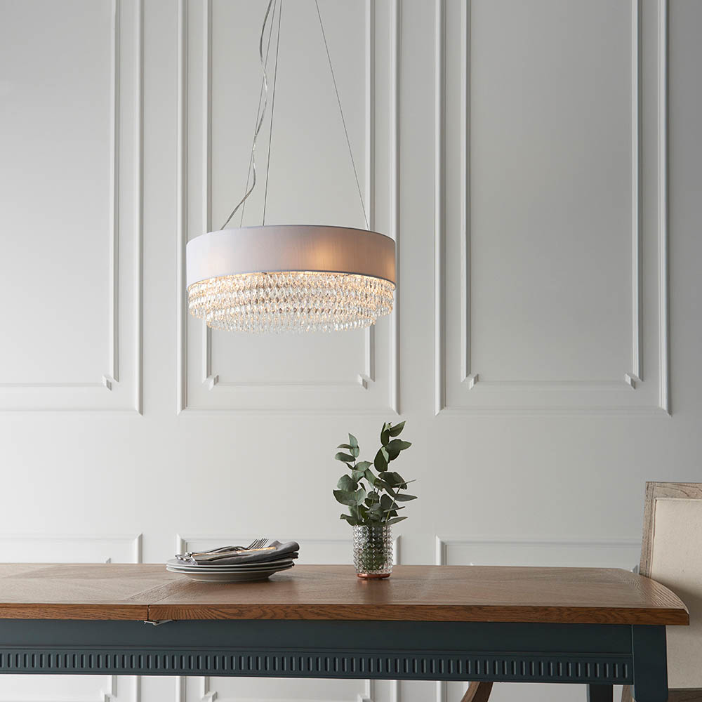 | Colour Finish | Silver grey fabric, clear glass & chrome plate |