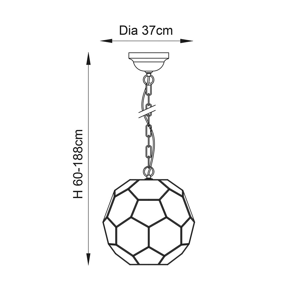 The Miele 1 light pendant has a striking design, incorporating hexagonal glass panels edged in antique brass. Suspended from a decorative chain, dimmable and suitable for use with LED lamps. Dimmable Antique brass plate & clear glass Constructed from steel & glass