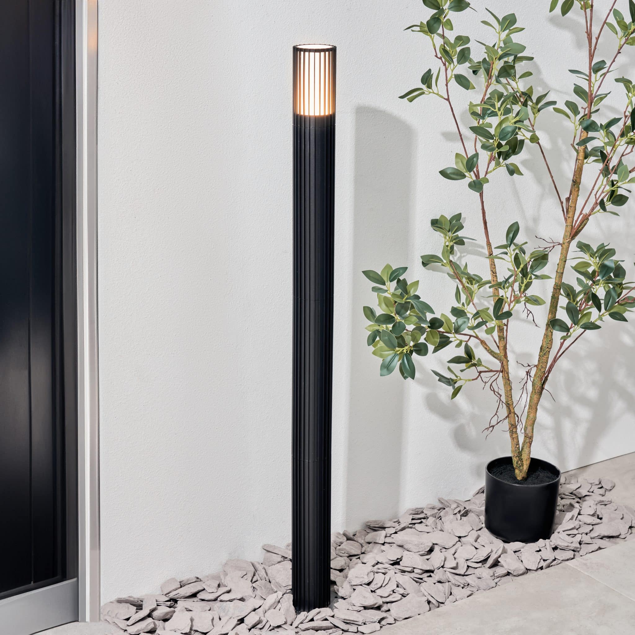 • Its sleek black finish offers a contemporary, sophisticated look that seamlessly blends with modern landscapes.