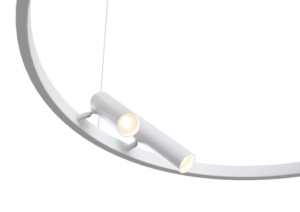 Pendant Lamp Technical Satellite White Metal frame with pivoting spots: horizontally 340° and vertically 90°. Integrated LED module.