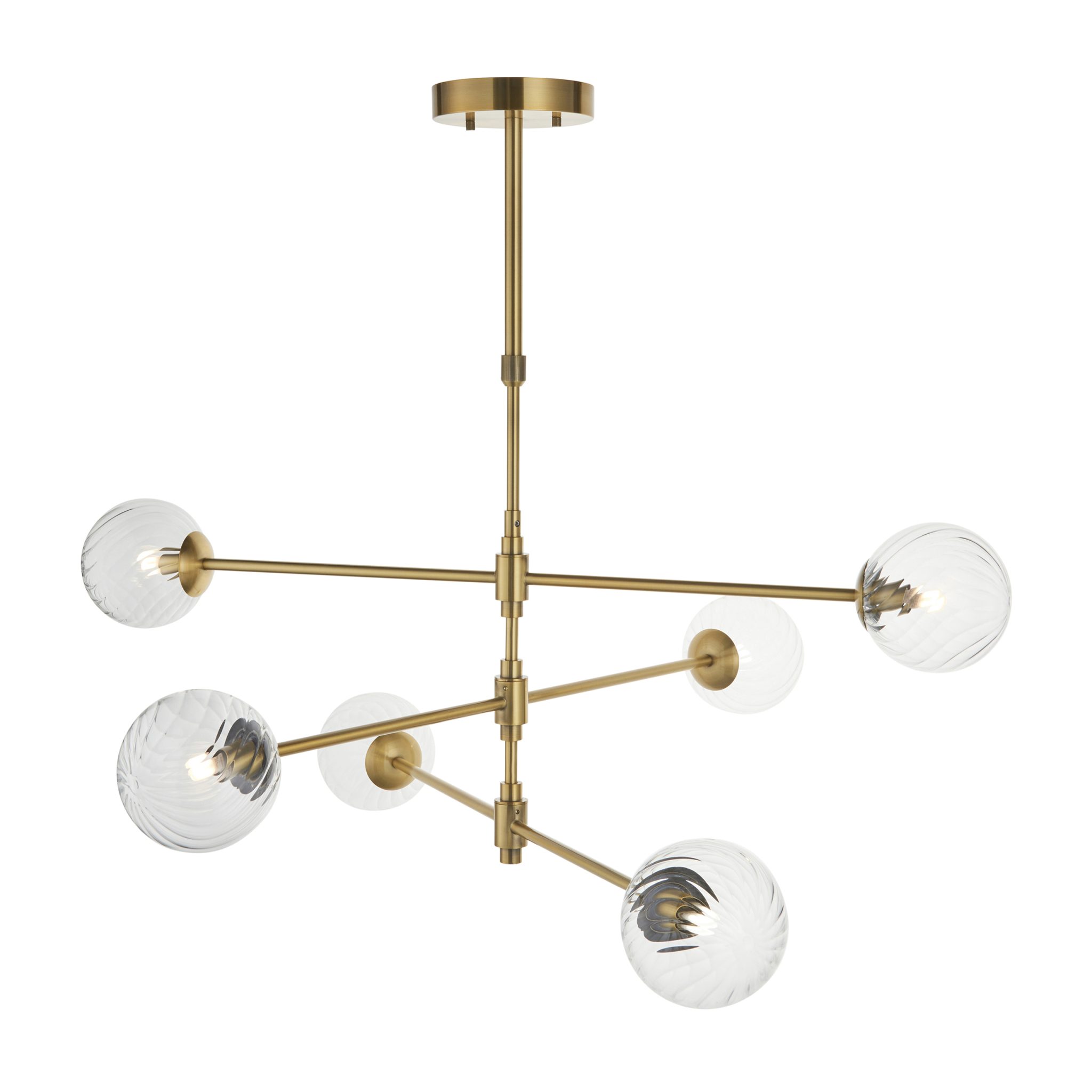 Ralph Pendant.  Create a striking contemporary look with this 6 light pendant inspired by mid-century style brought up to date with clear twisted pattern glass to diffuse the light. Matching items also available.