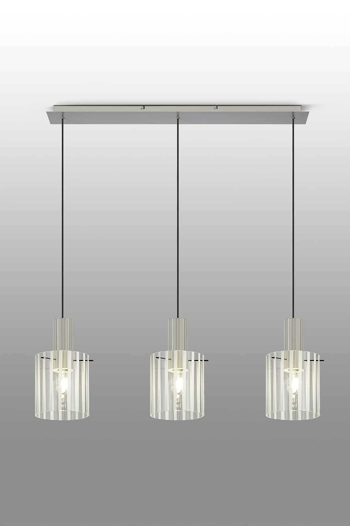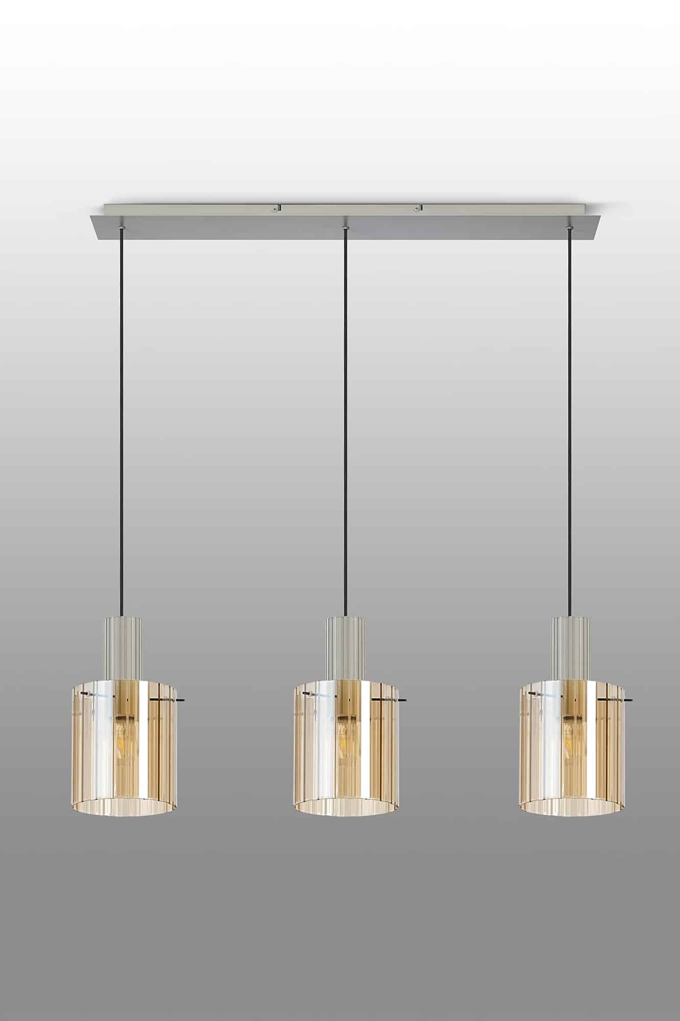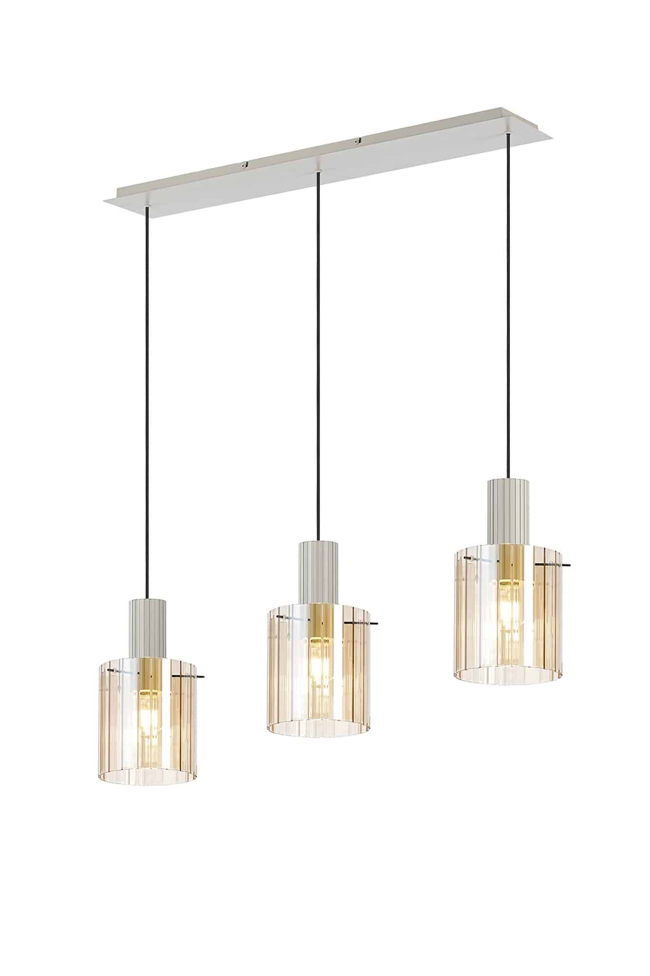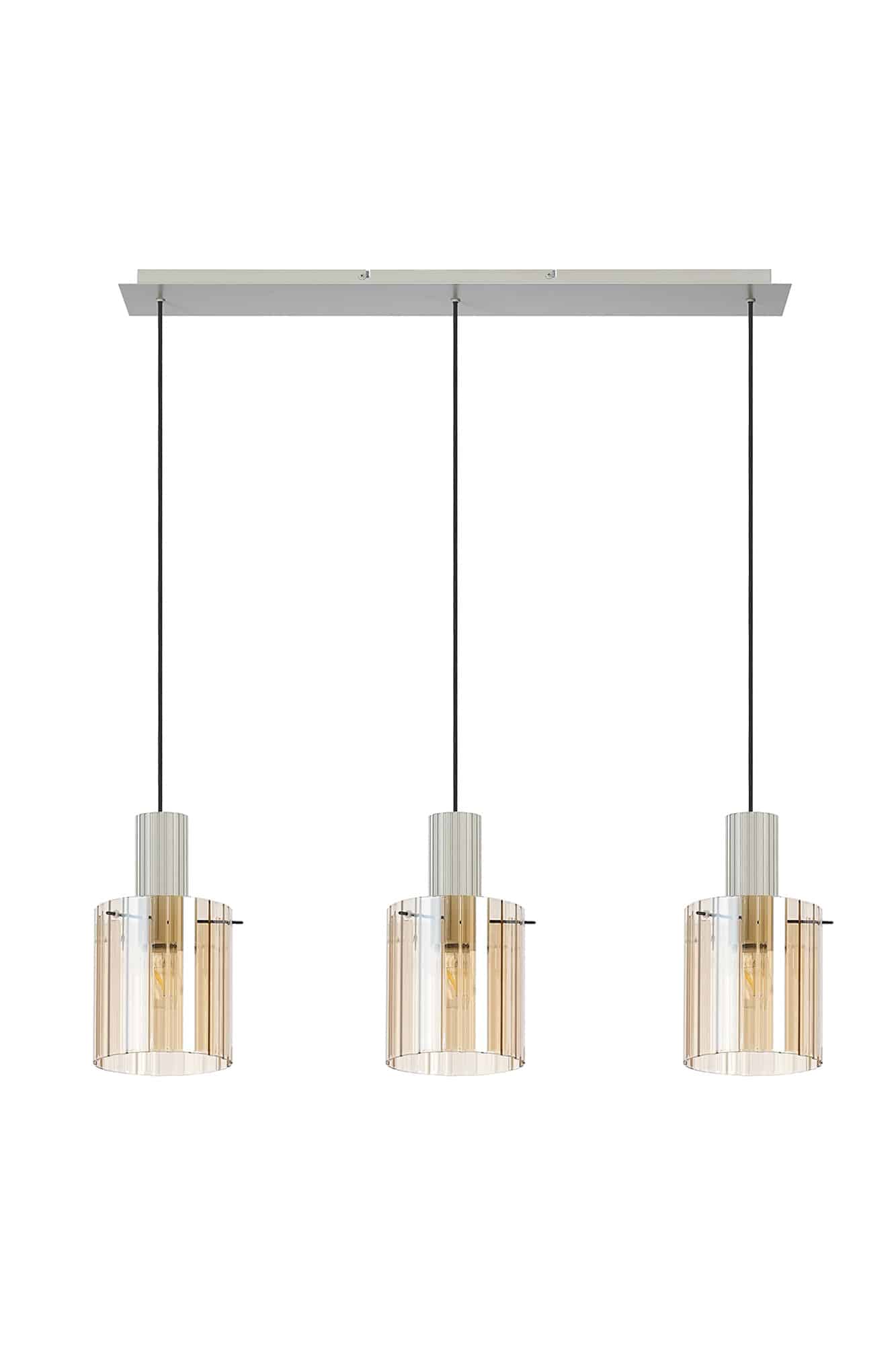 Linear pendant with ribbed glass finished in a painted beige