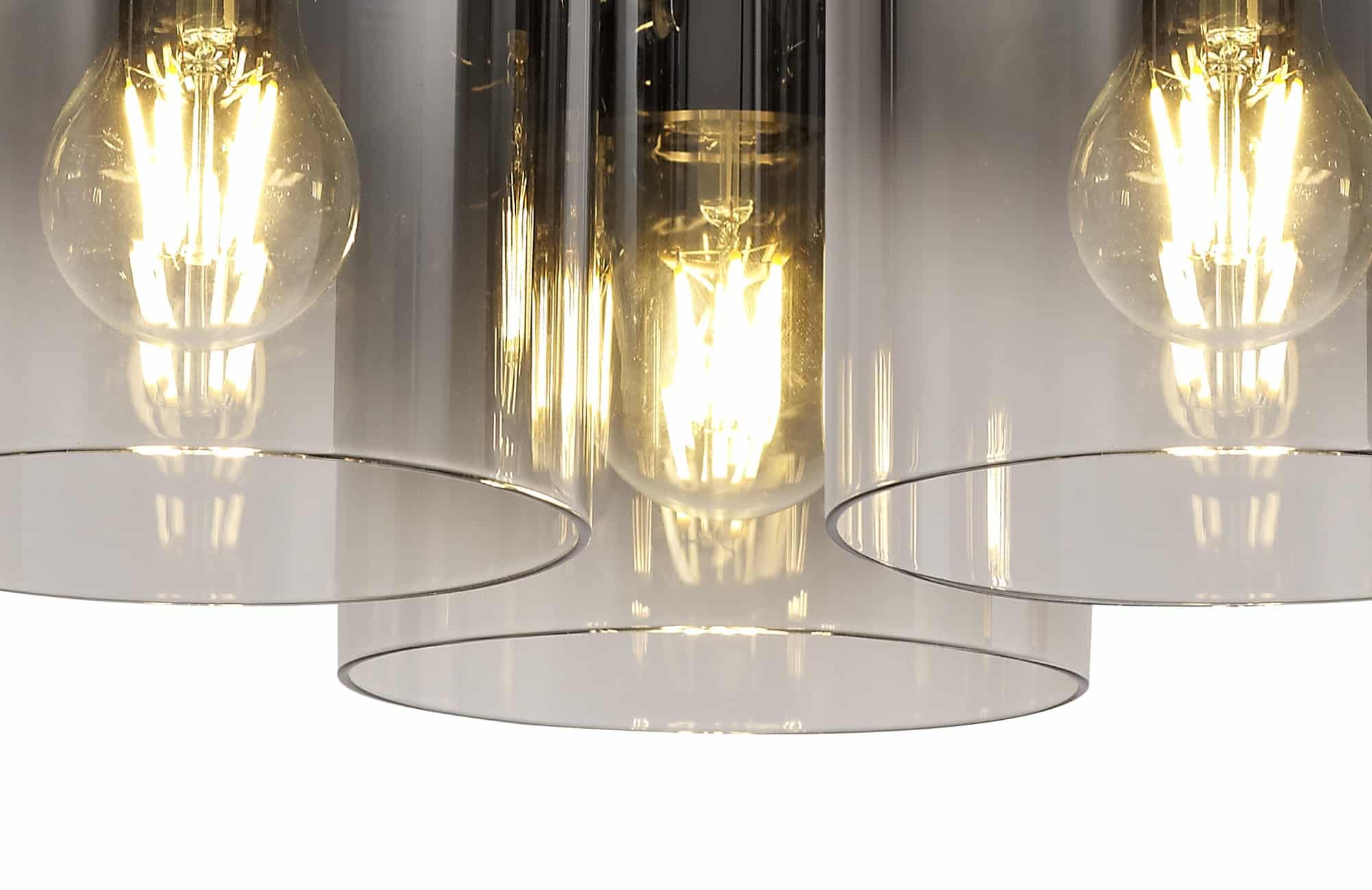 The multiple bulbs provide ample illumination, making it ideal for creating a warm atmosphere and task lighting. Crafted with meticulous attention to detail, the Reece round ceiling light boasts a sturdy construction.  What’s more, the black/smoke fade glass shade adds a touch of mystery, creating diffused light that forms a cozy environment. The chrome finish complements the glass, adding a sleek and contemporary touch to the overall design. This  Reece is perfect for various interior design styles, including modern, industrial, minimalist, and contemporary. Furthermore, it works well as a standalone piece or can be grouped with other lights to create a cohesive lighting scheme. Place it in your dining area to make a bold statement or above your kitchen island for a touch of elegance. With the Reece Round Ceiling you don’t have to sacrifice style for function.  In fact, it’s not just a light; it’s a work of art that enhances your space.  So, invest in Reece today and transform your room into a captivating and well-lit sanctuary. Click here to view the full Reece collection