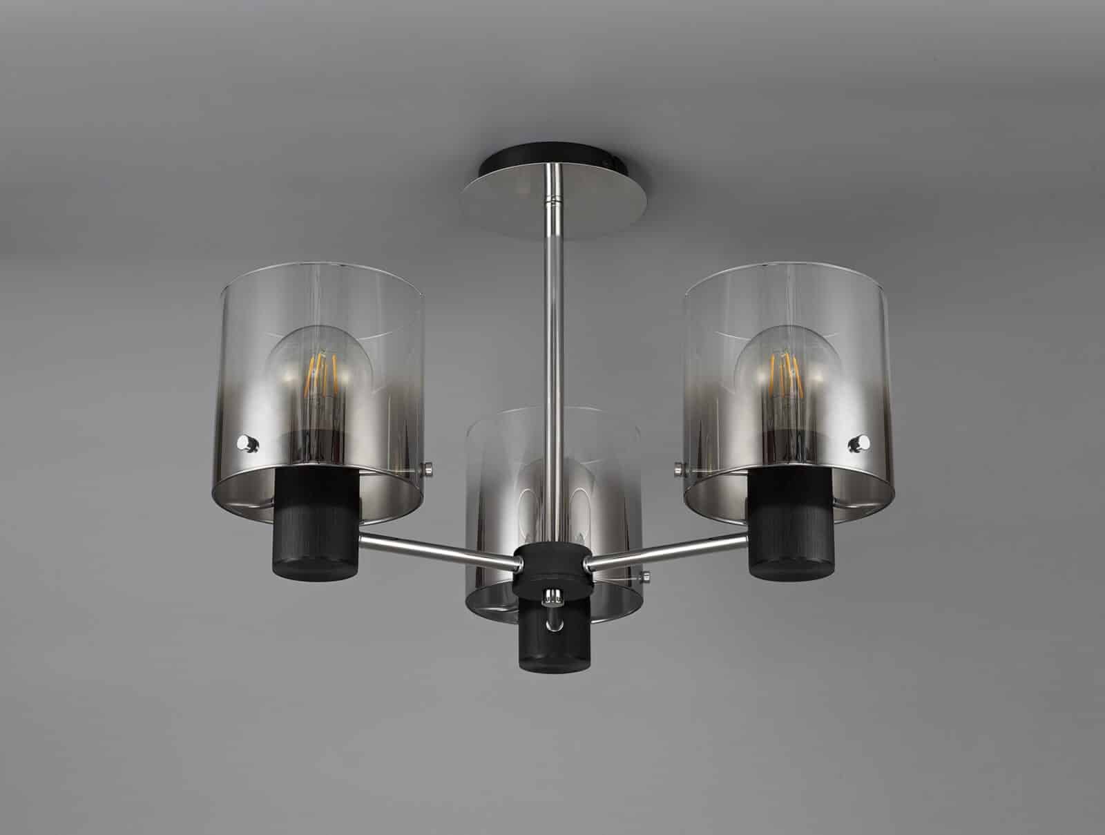 Reece Semi Flush Light, 3 x E27, Black/Smoke Fade Glass