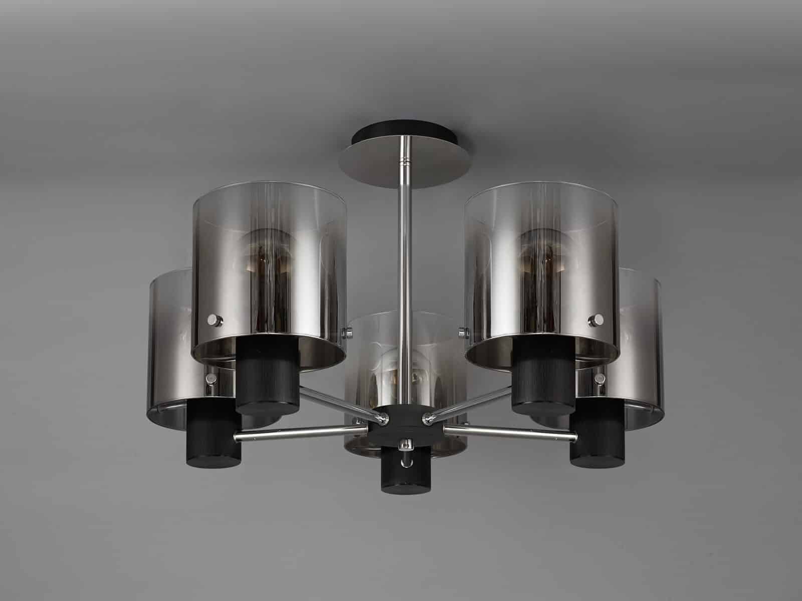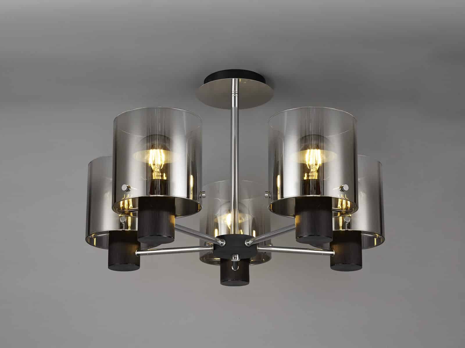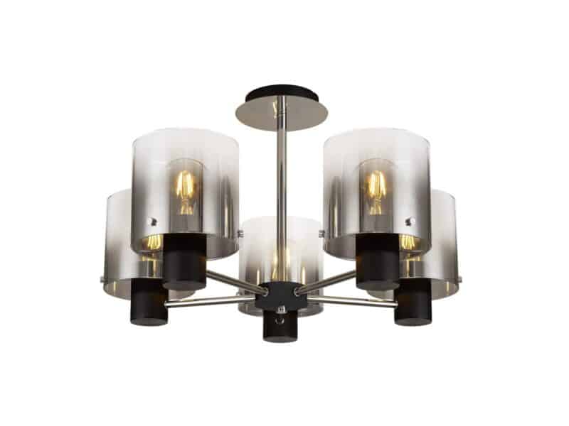 Reece Semi Flush Light, 5 x E27, Black/Smoke Fade Glass