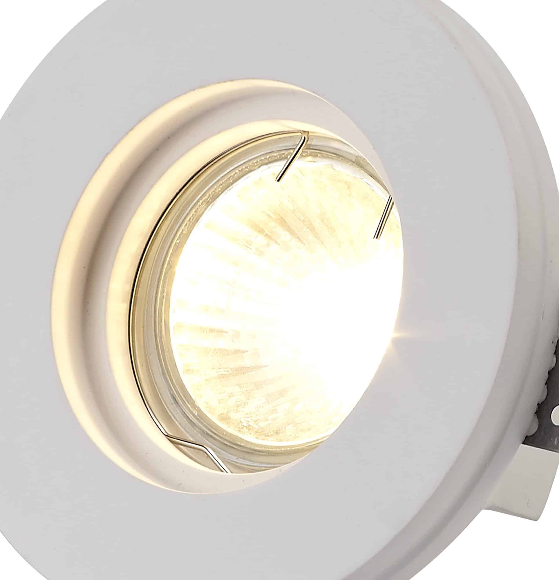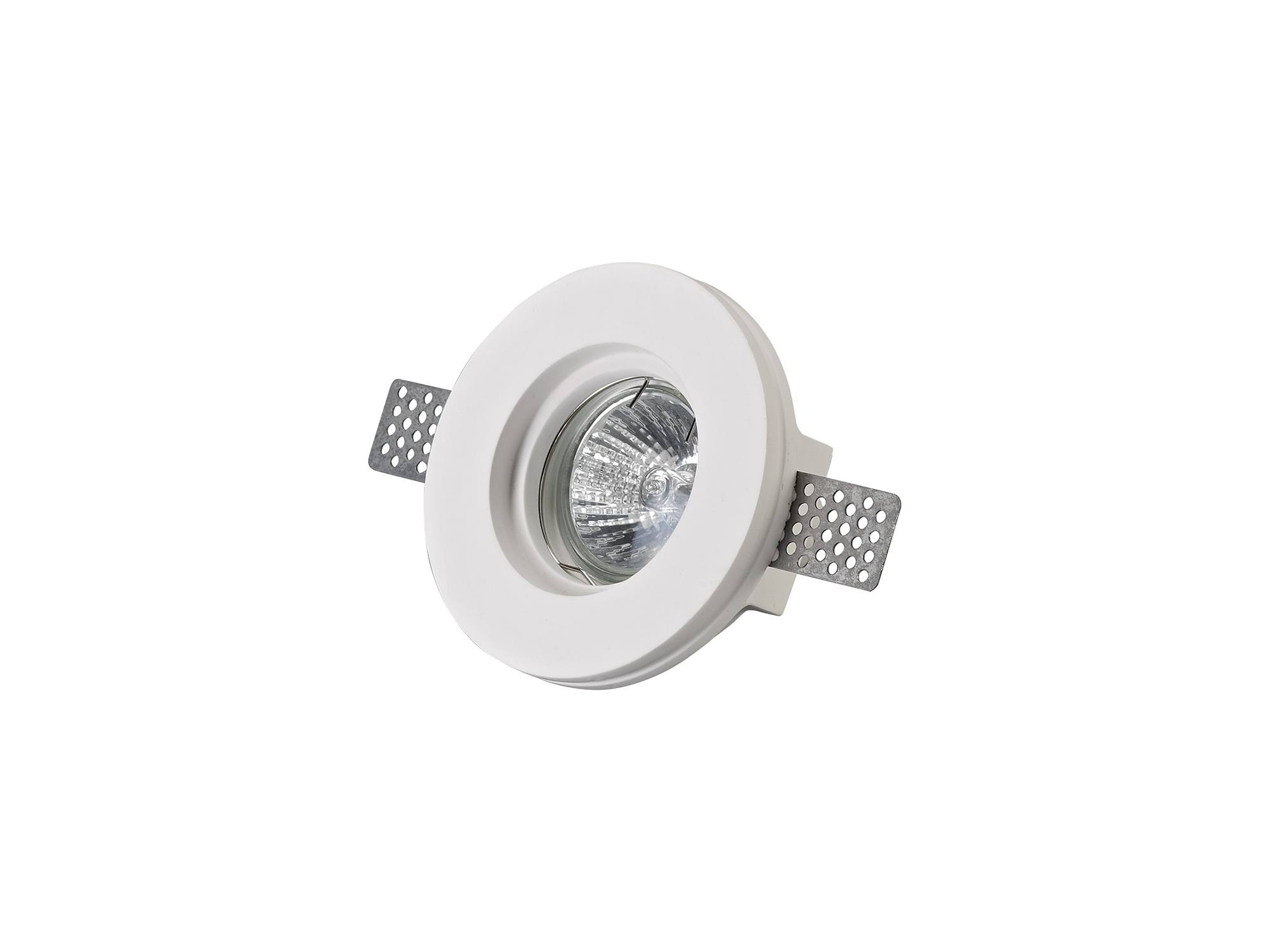 Rimo is a selection of downlights, wall lamps and two single pendants that have been specified for use in both industrial and domestic settings. The most highly appealing feature of this collection is the white gypsum finish which is paintable making the fixtures adaptable to specific needs and taste. The stepped downlights are available in round or square but the wall lights offer the most varied options. A rectangular recessed GU10 wall lamp is available in three size options while the LED wall lamp is a unique uplighter with integral 3000K light. There are also three originally formed wall lamps that take a single G9 lamp, the most intriguing of these three being the three dimensional prism shaped uplighter.