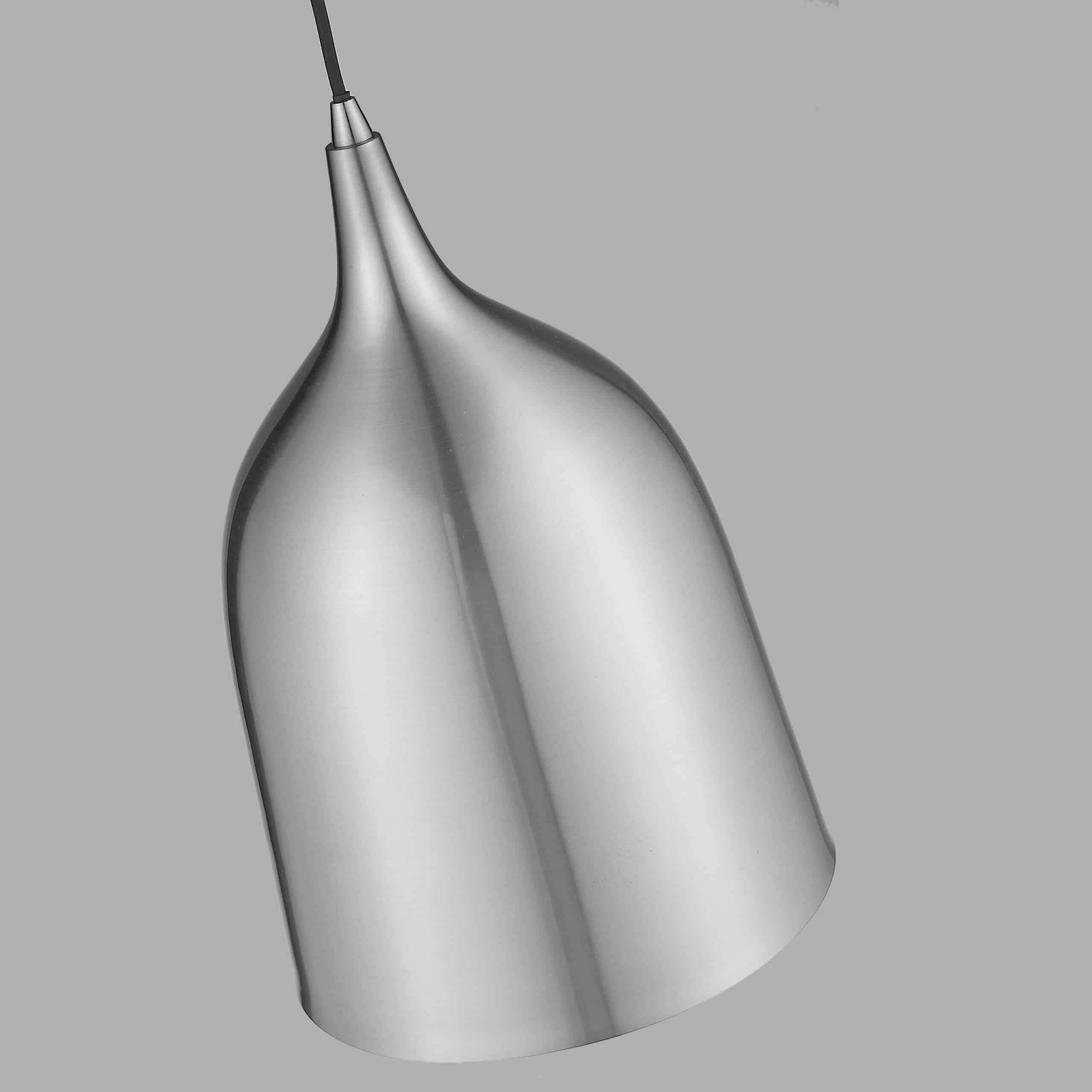 Satin Pendant Luminaire In Satin Nickel A modern bell shaped pendant with a brushed textured finish suspended with a black weaved fabric cable.