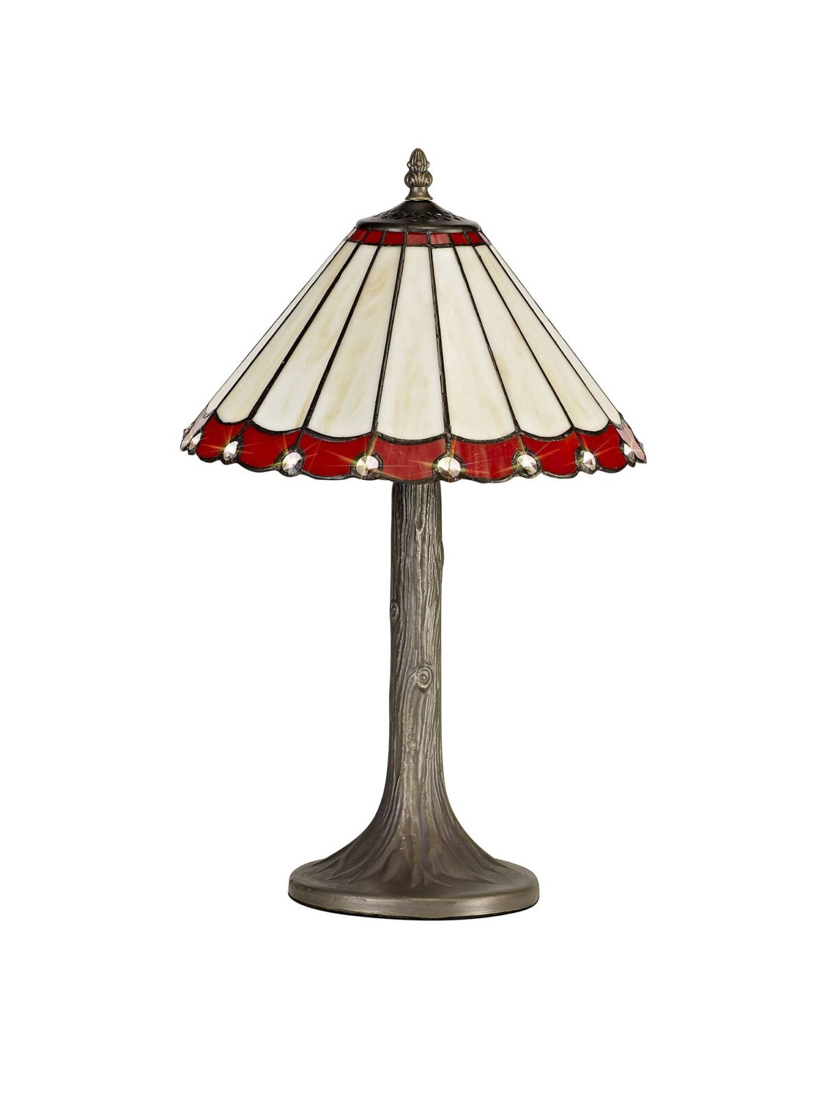 Tiff-19 1 Light Tree Like Table Lamp E27 With 30cm Tiffany Shade, Red/Cream/Crystal/Aged Antique Brass