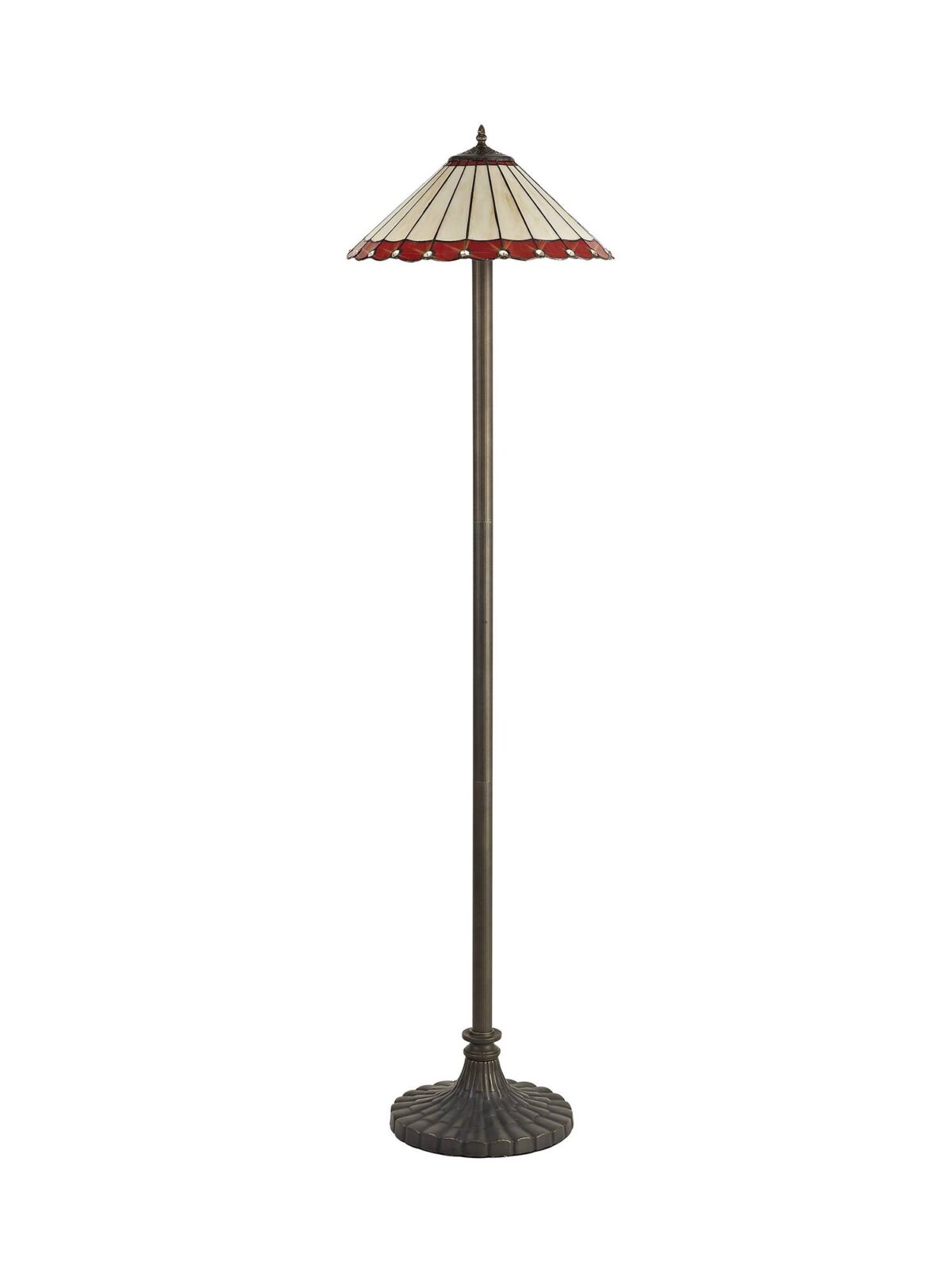 Tiff-19 2 Light Stepped Design Floor Lamp E27 With 40cm Tiffany Shade, Red/Cream/Crystal/Aged Antique Brass