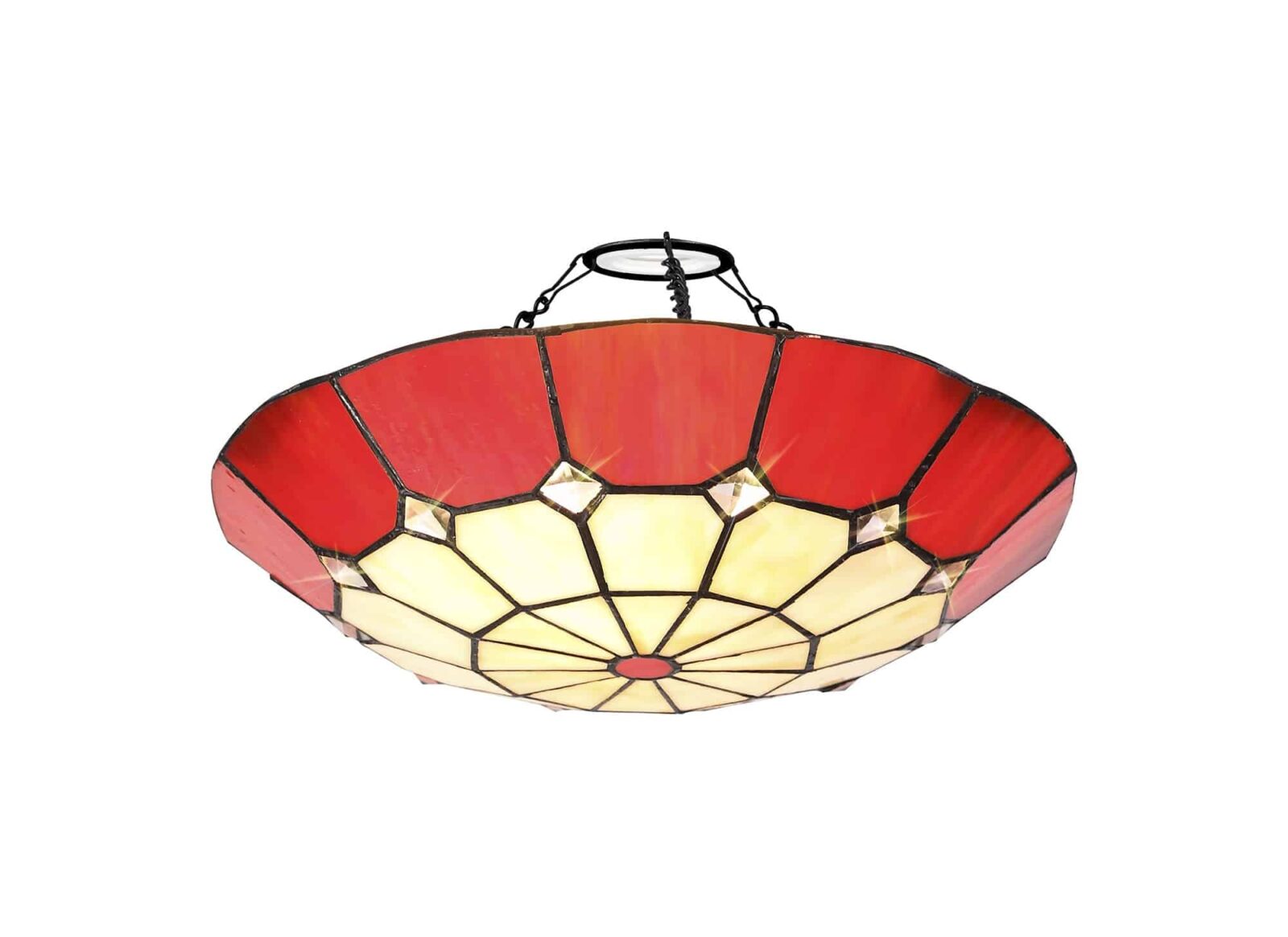 Tiff, Tiffany 35cm Non-electric Uplighter Shade, Cream/Red/Clear Crystal Centre/Aged Antique Brass Trim