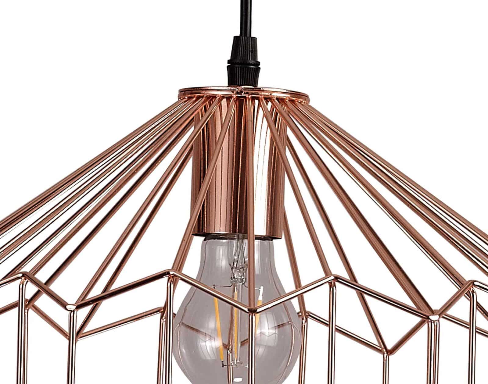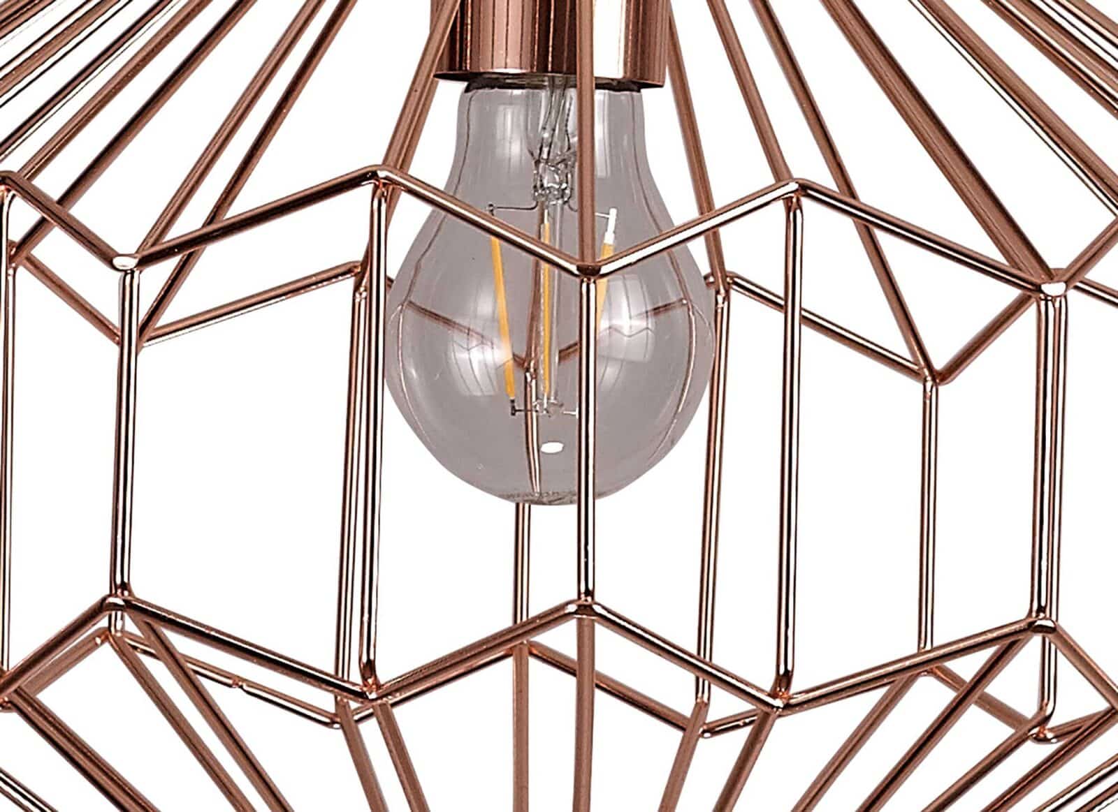 With geometric shapes and form, the Vellentin range includes two pendants finished in a stunning Antique Copper/Black, ideal for use within a traditional atmosphere or even to bring a touch of contemporary ambience to a modern space. The wired format of the metalwork allows an open uninhibited dispersal of light from the E27 lampholder. Both lights take a maximum 60W ensuring an extensive amount of illumination is achievable.