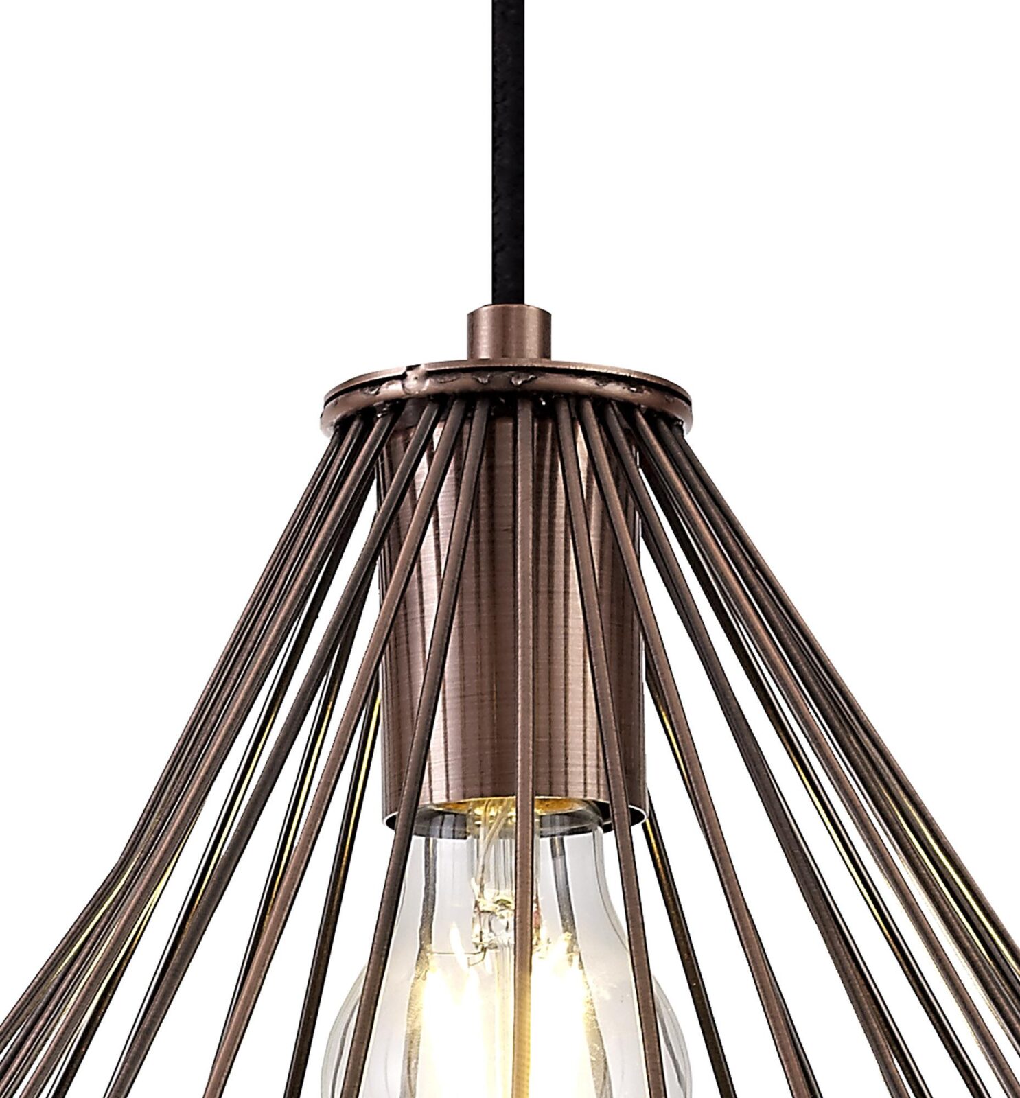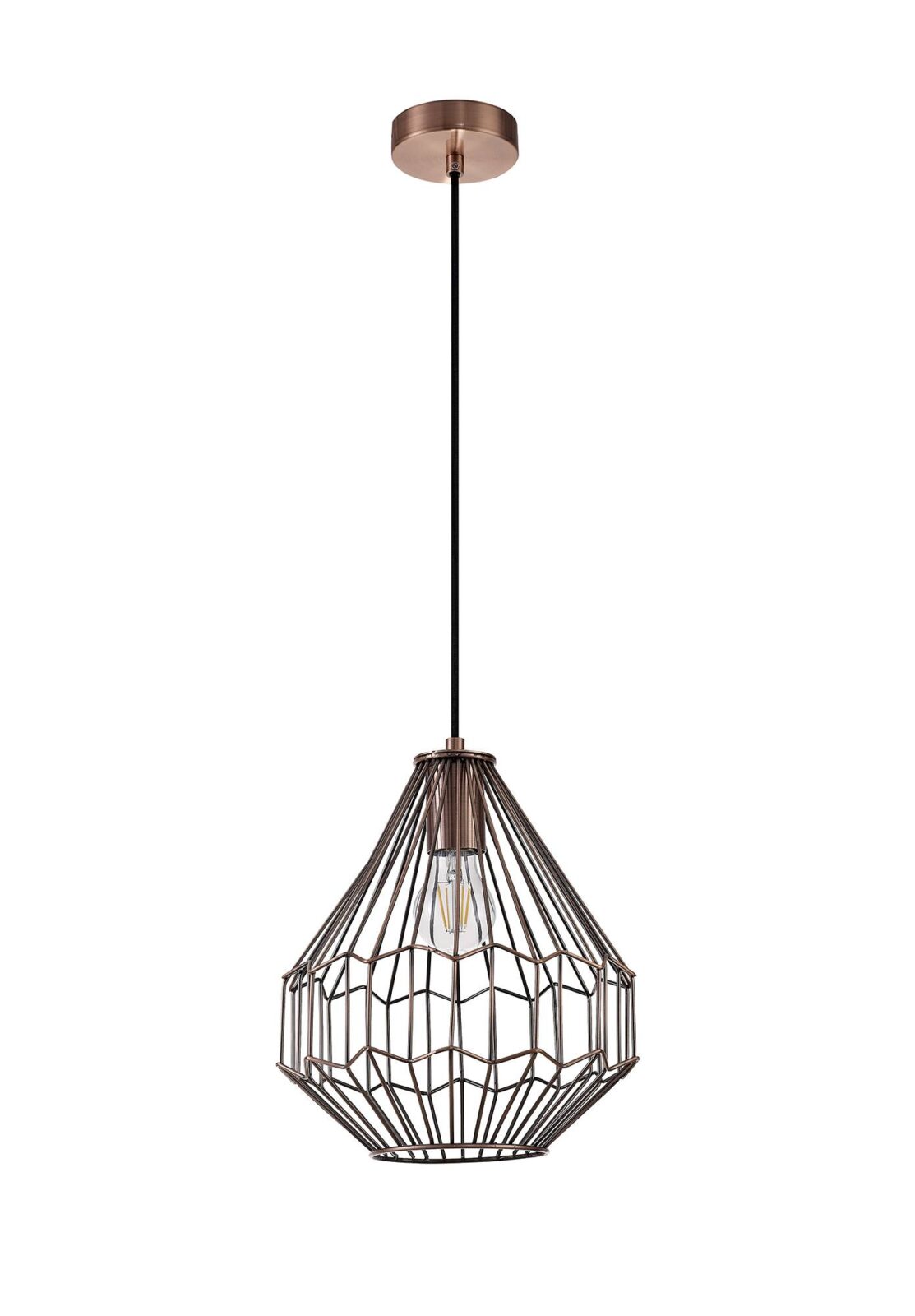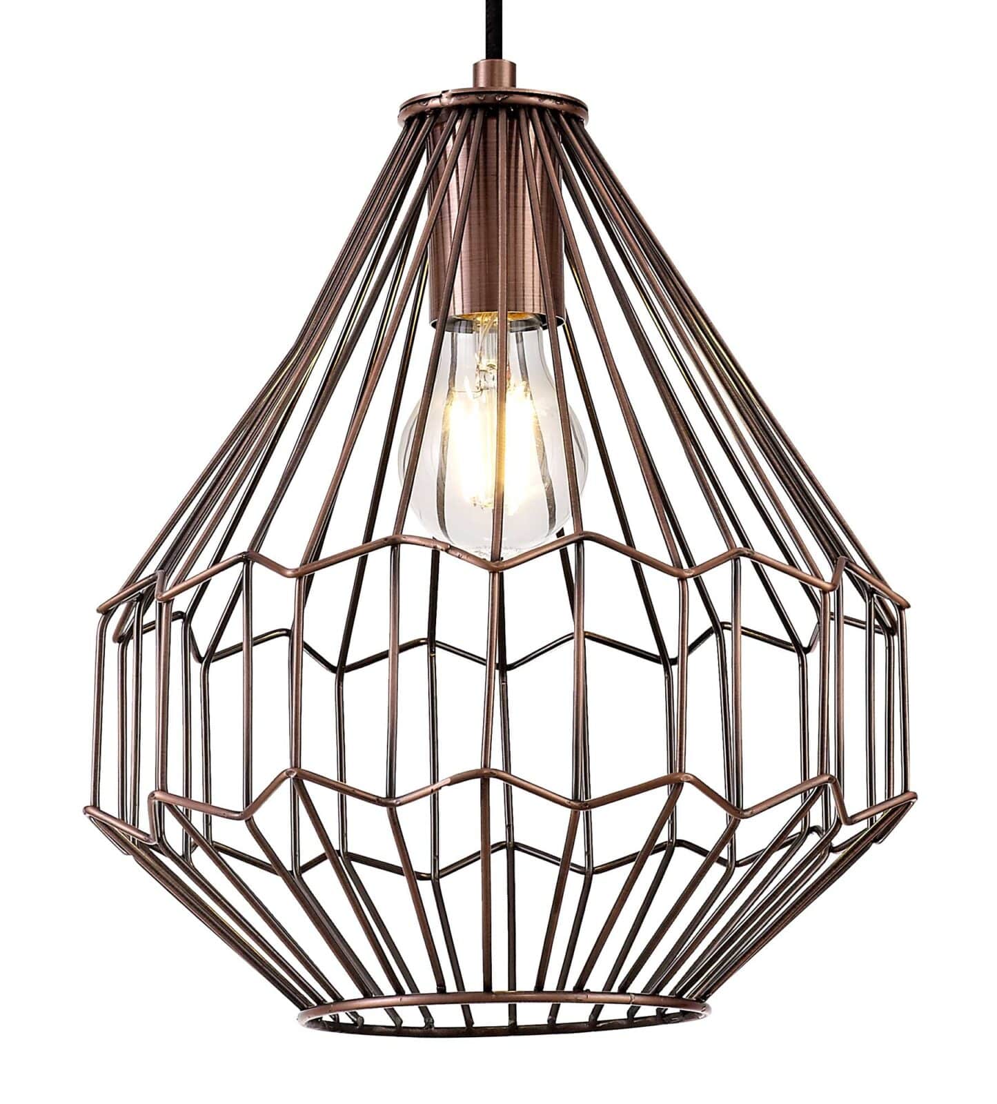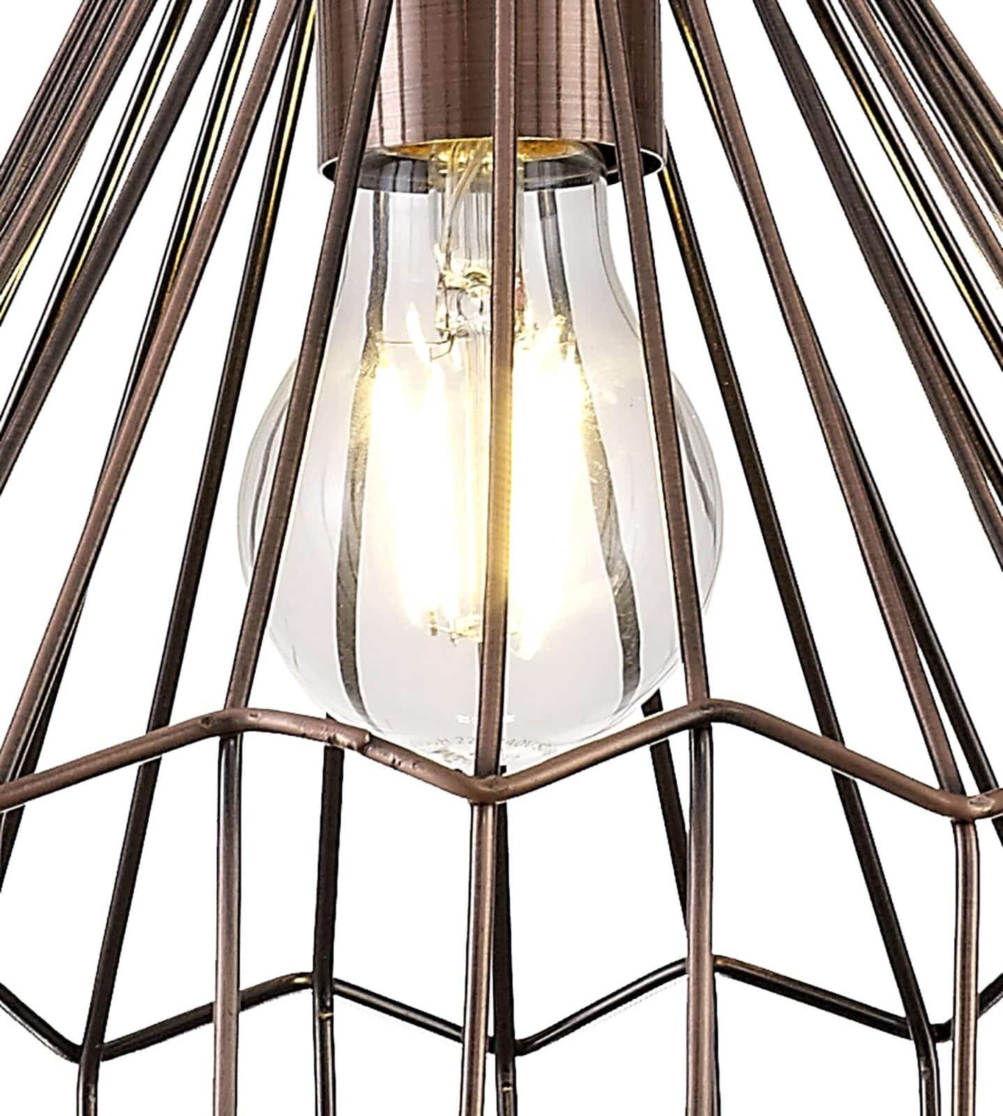 With geometric shapes and form, the Vellentin range includes two pendants finished in a stunning Antique Copper/Black, ideal for use within a traditional atmosphere or even to bring a touch of contemporary ambience to a modern space. The wired format of the metalwork allows an open uninhibited dispersal of light from the E27 lampholder. Both lights take a maximum 60W ensuring an extensive amount of illumination is achievable