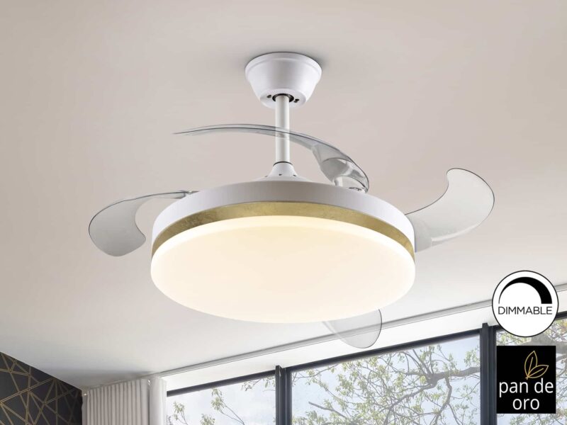 This versatile fan boasts a range of features designed to enhance your everyday life. Whether you’re looking to cool down during the summer months or create a cozy atmosphere in the winter, the Vento Gold Ceiling Fan has you covered. Its opal diffuser provides soft, diffused light, perfect for relaxing evenings or productive work sessions. The clear retractable blades not only add a contemporary flair to your space but also ensure optimal airflow throughout the room. Additionally, with its DC motor and adjustable color temperature, you can customize your comfort with ease. Say goodbye to stale air and outdated lighting fixtures, and say hello to the ultimate in modern convenience with the Vento Gold Ceiling Fan. Transform your space today and discover the difference a quality ceiling fan can make.