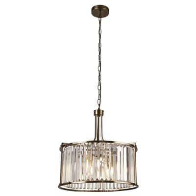 Bring classic glamour into your home with the Victoran 5-Light Pendant. Designed with an antique brass drum shade, this pendant light is adorned with clear crystal detailing that shimmers beautifully when illuminated. Perfect for dining rooms, living spaces, or hallways, it creates a statement feature while delivering warm and brilliant light.